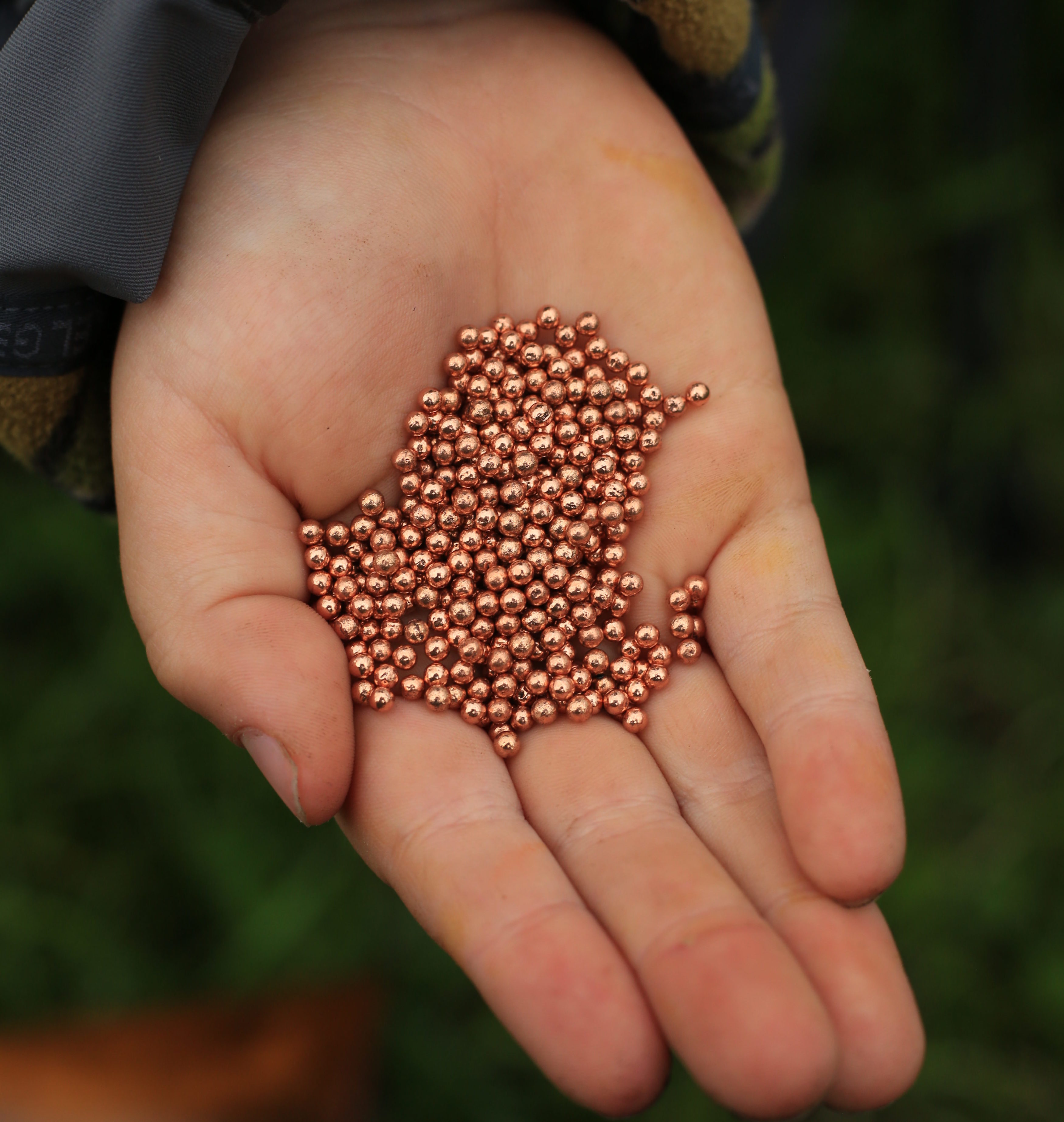 Neben günstigen Weicheisenlaborierung können selbstverständlich auch Kupferschrote verschossen werden. Die Wirkung ist mit der von Blei vergleichbar, wenngleich Kupfer nicht so ein hohes spezifisches Gewicht besitzt wie das Schwermetall. Wie bei Weicheisen-, sollte auch bei Kupferlaborierungen ein bis zwei Nummern gröberes Schrot verwendet werden. Mit Kupferschroten lassen sich auch hervorragend Gänse bejagen.