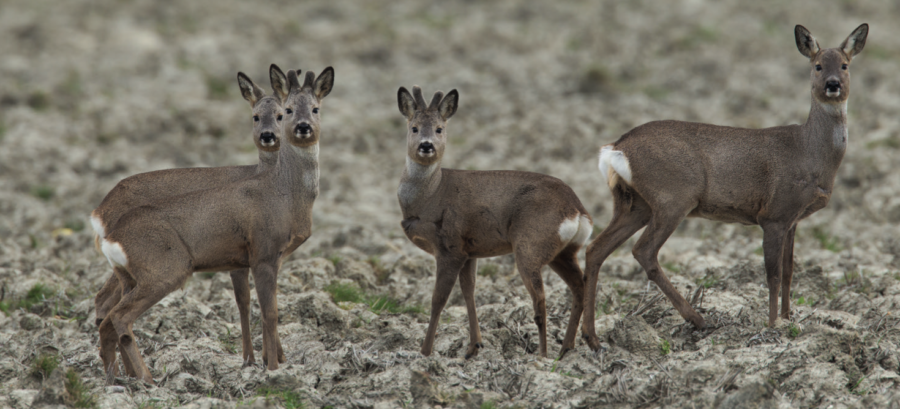 Deutlicher geht es nicht: Ricke mit drei Jährlingen (2 Böcke, 1 Schmalreh). © Sven-Erik Arndt