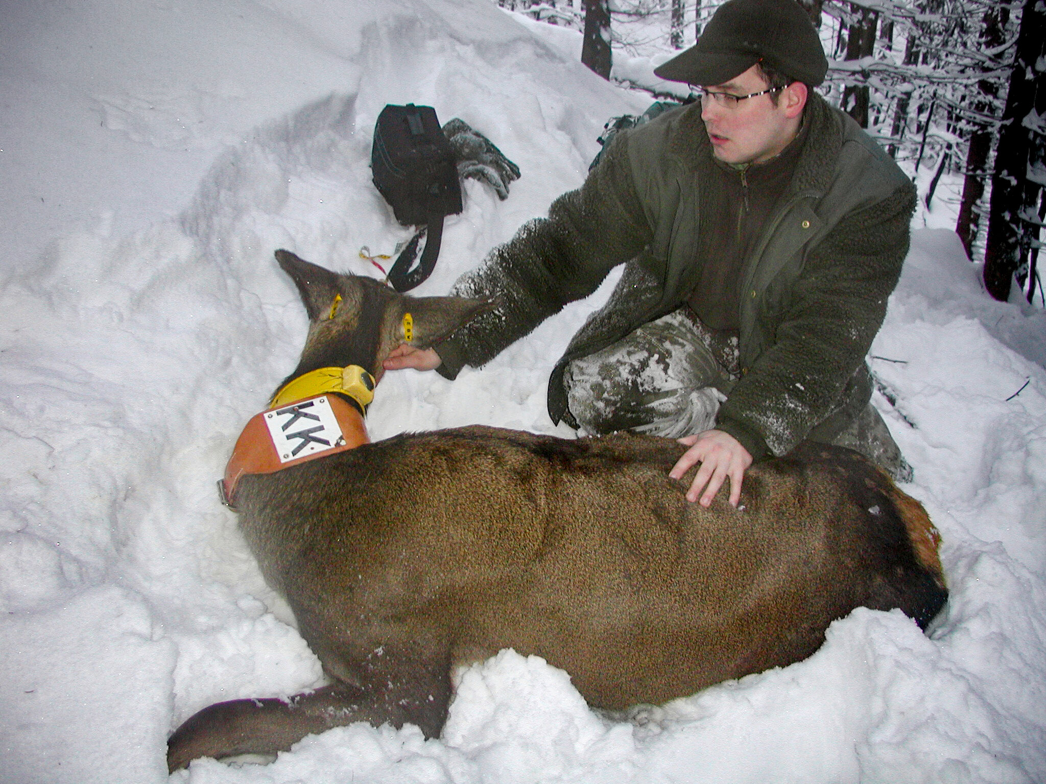 Beide noch jung an Jahren: der Autor beim Besendern des Alttiers „KK“ im Februar 2006. © Thünen-Institut